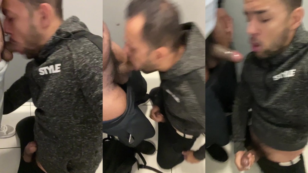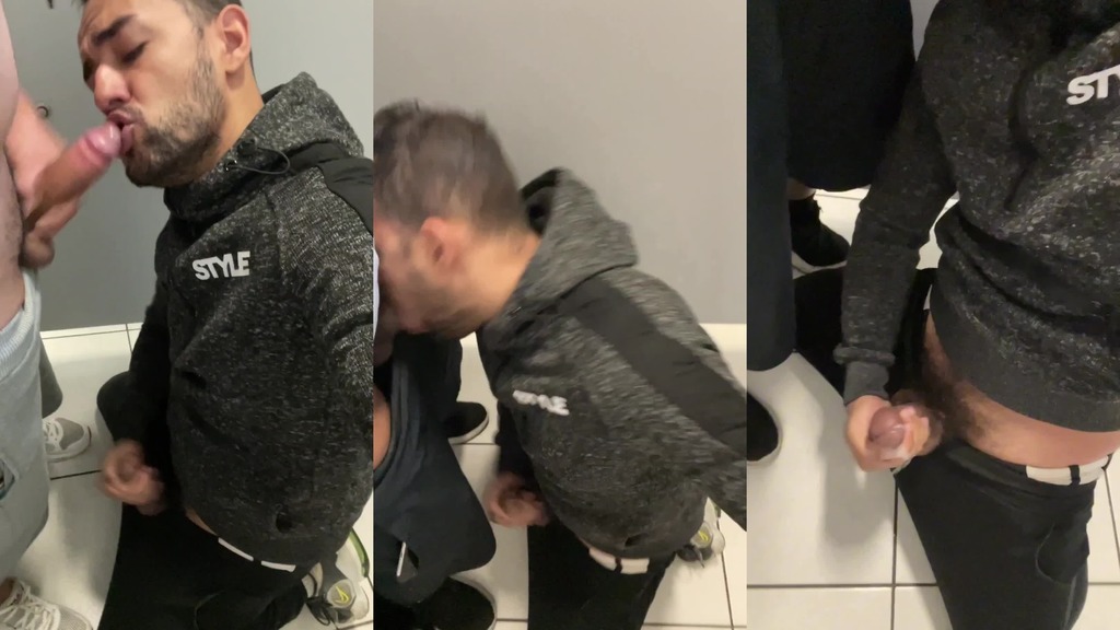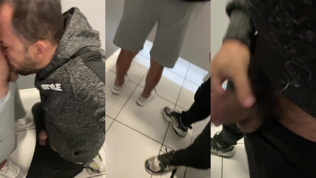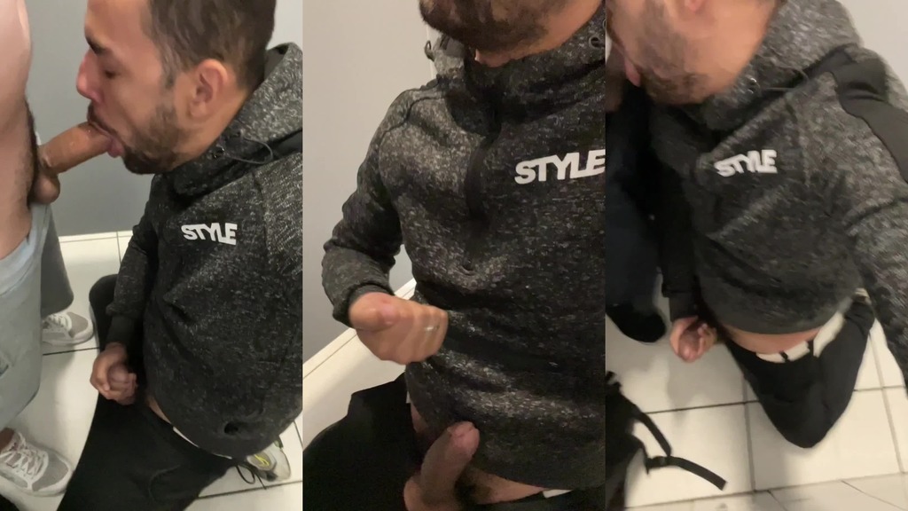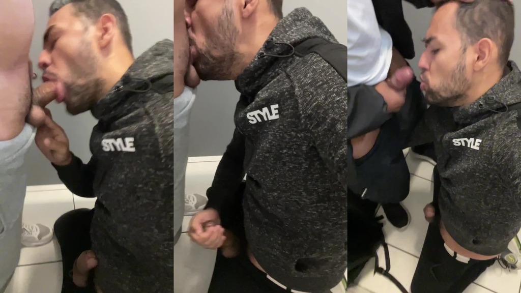entrou um e logo outro entou no box do banheiro querendo uma mamada, estava de joelhos e la fiquei para mais uma boa gozada na boca.